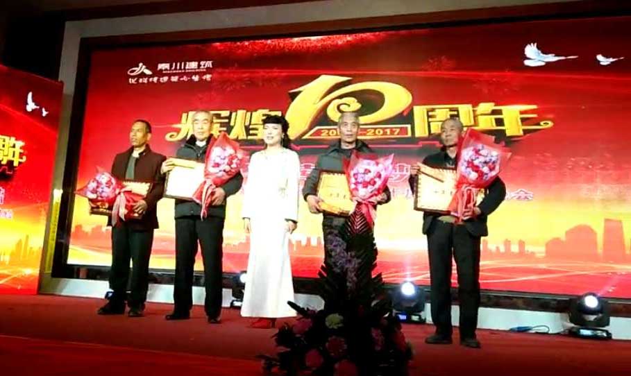 17:56慶典晚會(huì)拉開帷幕,一番精彩的燈光秀和開場舞后,全場觀眾凝神聚目觀看公司十年發(fā)展歷程記錄片,大家無不為之動(dòng)容,很多員工也紛紛落下了激動(dòng)的淚水。省建筑業(yè)協(xié)會(huì)徐會(huì)長、原渭南技術(shù)學(xué)院黨委書記雷書記先后發(fā)表講話,表達(dá)了對(duì)公司的祝賀及美好祝愿。田銀川董事長向支持、關(guān)心公司發(fā)展的省、市建設(shè)主管部門、協(xié)會(huì)、合作單位、員工家屬、各介朋友及員工們表示了深切的感謝,并代表秦川公司全體員工鄭重宣布:將開啟公司新的篇章,創(chuàng)造下一個(gè)更加輝煌的十年!讓員工們過上更加幸福小康的生活!晚會(huì)現(xiàn)場,劉愛云總經(jīng)理為和公司一起成長、做出貢獻(xiàn)的雷根緒、鈔永記、袁建忠、徐長宏四名員工頒發(fā)了榮譽(yù)證書、獎(jiǎng)品。